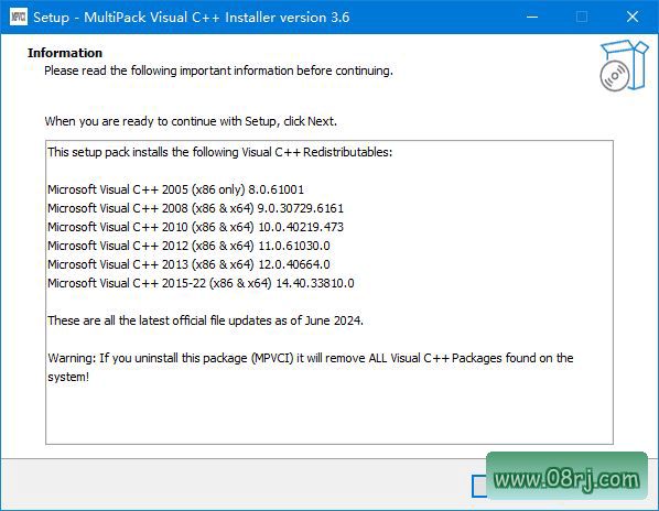 Installer bundle includes all the newest VC++ 2005 – 2026 Packages:
