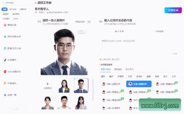 2. 照片数字人制作:万彩AI平台拥有海量的数字人角色库,提供了众多虚拟数字人形象供用户选择。只需选择好心仪的数字人角色,然后在右侧输入想要表达的话语内容,再选择合适的配音角色,一键点击就能生成会说话的数字人视频,效果非常逼真自然。