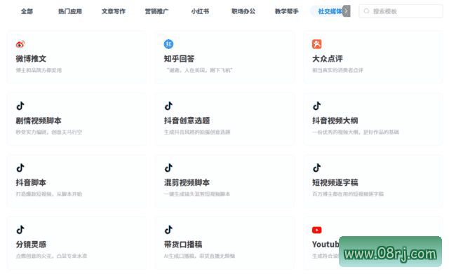 3. 社交媒体文案创作:支持短视频脚本和大纲创作、知乎回答、微博推文等专业文案生成。只需要输入相关关键字,就能快速生成一篇专业水准的社交媒体文案,帮助用户轻松玩转各大社交媒体平台。此外还支持大众点评打卡内容生成,包括景点打卡、美食打卡、店铺打卡等各种消费者点评内容,一键生成非常真实的用户评价。
