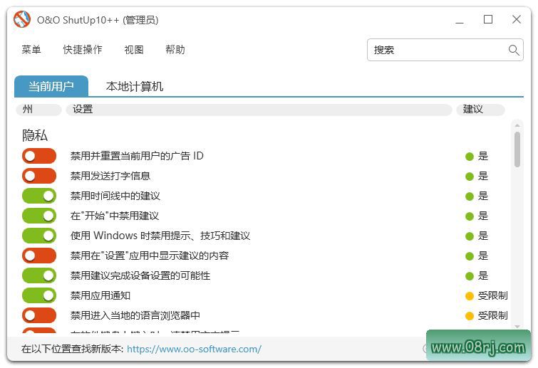 定期使用O&O ShutUp10检查系统隐私设置,及时关闭新出现的可能泄露隐私的功能。软件更新版本后,建议查看新增的设置选项,了解最新的隐私保护功能。