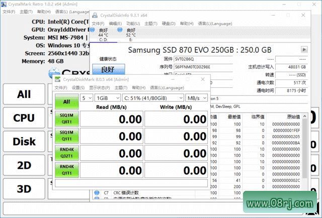 2. 使用 CrystalDiskMark 测试硬盘性能,评估硬盘读写速度。